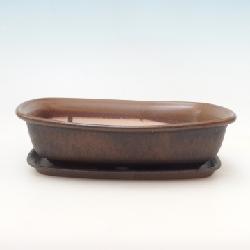 Bonsai kom + schotel H08 - 25 x 19,5 x 6 cm - bruin