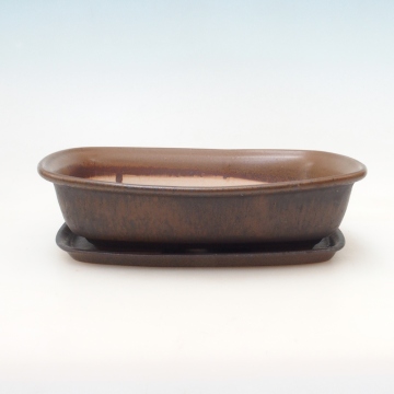 Bonsai schaal + schotel H09 - 30 x 23 x 7,5 cm - bruin