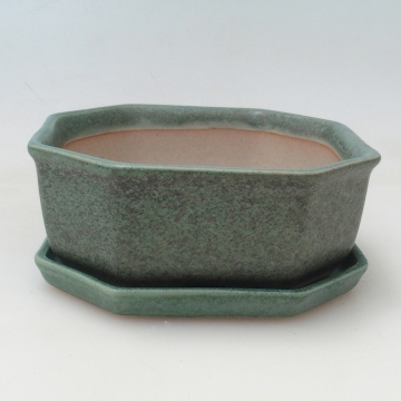 Bonsaischaal + schotel H13 - 12,5x12,5 x4,5 cm - groen