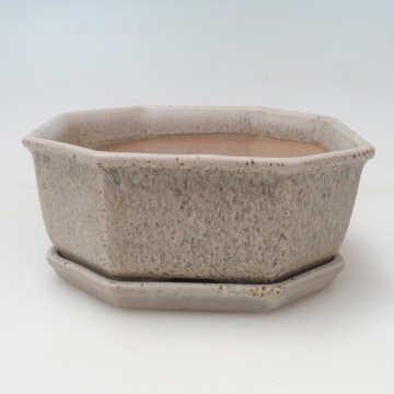 Bonsaischaal + schotel H13 - 12,5x12,5 x4,5 cm - beige