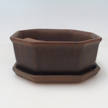 Bonsaischaal + schotel H13 - 12,5x12,5 x4,5 cm - bruin