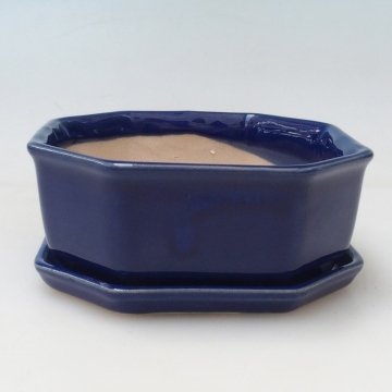 Bonsai kom + schotel H13 - 12,5x12,5 x4,5 cm - blauw