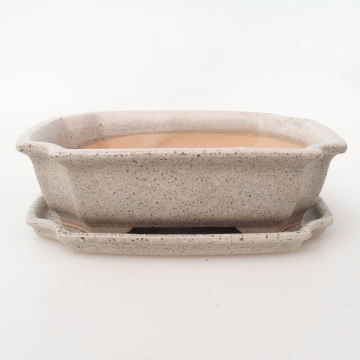 Bonsai kom + schotel H17 - 15 x 10 x 4 cm - beige
