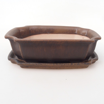 Bonsai kom + schotel H17 - 15 x 10 x 4 cm - bruin