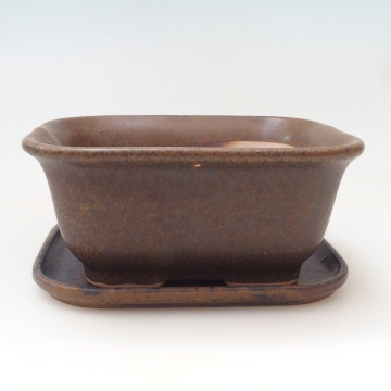 Bonsai kom + schotel H37 - 14,5x13x6,5 cm - bruin