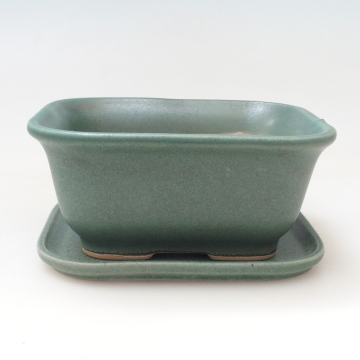 Bonsai kom + schotel H37 - 14,5x13x6,5 cm - groen